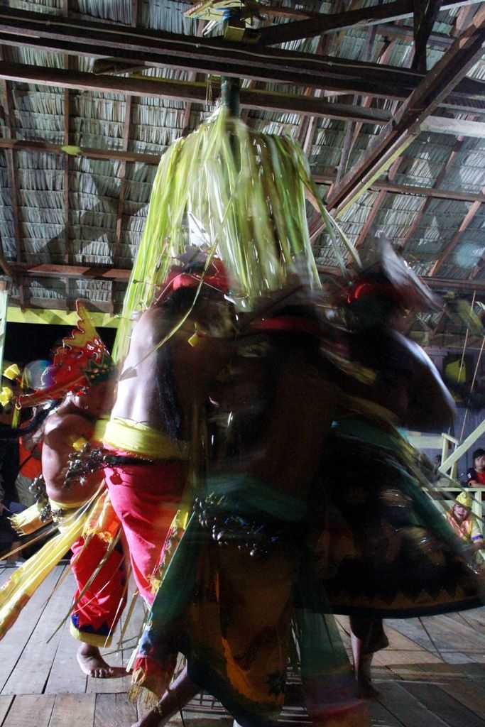 Bunyi tetabuhan gendang dan gong berirama monoton yang terus mengalun mengiringi ritual itu menambah suasana magis semakin terasa dalam upacara adat itu. Apalagi ketika 7 orang Belian mulai berputar mengelilingi Binyawan yang diletakkan di tengah bangunan.