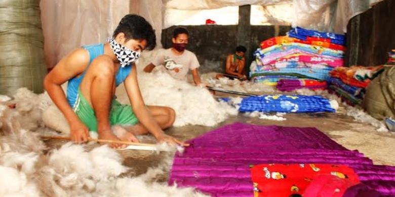 “Sudah hampir sepuluh tahun saya berkerja di sini. Pekerja pria memasukan kapuk ke dalam kain, dan sebagian ibu-ibu lainnya menjahit sisi, kanan dan kiri. Seluruhnya manual, tanpa bantuan mesin,” kata Katima, wanita paruh baya, saat ditemui, Rabu (24/9/2014).